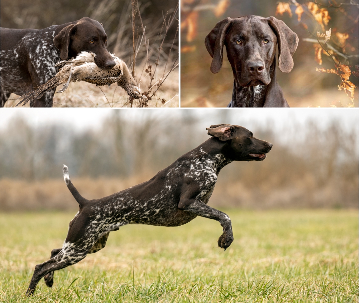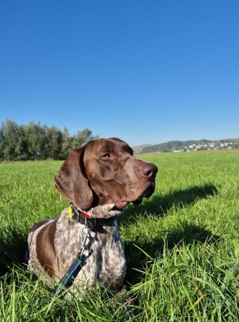 Der elegante, athletische Braunschimmelrüde lebt mit einem anderen Rüden im Haushalt einer Jagdschule. Hier macht er täglich durch sein freundliches und ausgeglichenes Wesen gegenüber Hund und Menschen große Freude. In der Ausbildung zeigt er sich als ausgesprochen führig und aufmerksam. Sein Gehorsam macht ihn jagdlich sowie in allen anderen Lebensbereichen zum perfekten Begleiter. Er wird am Wasser auf Federwild bis Schwan und Nutria sowie im Offenland auf alle vorkommenden Wild-/Raubwildarten eingesetzt. Bei Nachsuchen arbeitet er zuverlässig mit der zu erwartenden Schärfe.Artos konnte auf mehreren Niederwildjagden in Ungarn überzeugen. Er arbeitete unermüdlich im Team mit den dortigen Revierhunden und zeigte dort ausgezeichnete Vorsteh- und Bringleistungen an Feldhase, Ente, Fasan und Rothuhn. Er ist zum ASP-Kadaversuchhund mit Anzeigeverhalten Bringseln ausgebildet.Aktuell wird er auf die Verbandsschweißprüfung vorbereitet.