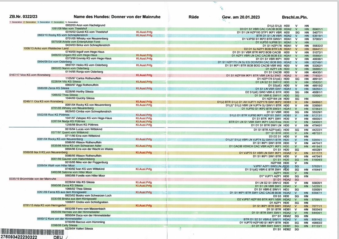 Gew. 20.06.2022, D1, S1, VGP1, HN, Btr., Formwert sg, Stockmaß 66 cm, HD A/1 beidseitig frei. OCD-frei, Übergangswirbel frei,